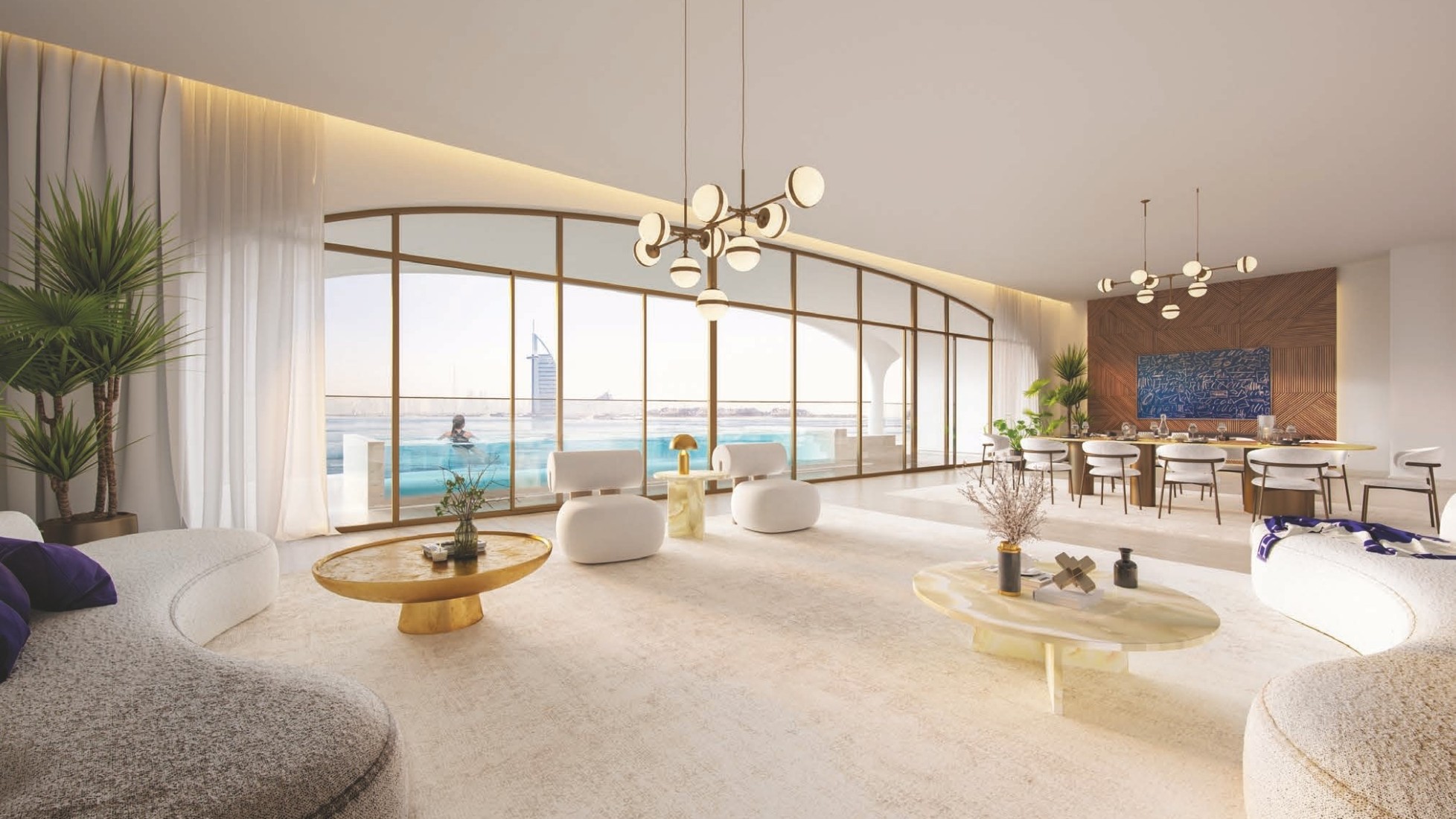 Ocean House by Ellington Properties introduces residents to exclusive Oceanside living, to create a home of unique experiences curated for, and by, residents seeking a lifestyle incomparable to anywhere else. Ocean House features a remarkable collection of beachfront residential apartments on the Palm with views of the Burj Khalifa, Burj Al Arab, Marina Skyline, Palm Jumeirah, and Arabian Gulf. Featuring 2 to 6-bedroom apartments, duplexes, and penthouses with a curated lifestyle and private club amenities. From a 50-meter Olympic swimming pool, a wellness studio, a clubhouse, a fitness studio, a cinema room, a games room, and so on.