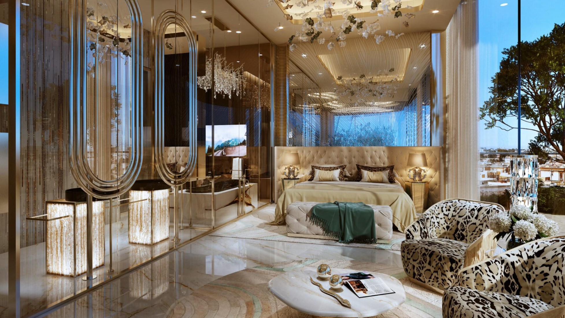 CAVALLI COUTURE is more than a place to live. It is a way of life, inspired by one of our most majestic natural environments: Amazonia. rich in greenery and water features, this landmark gives those at the apex of society the opportunity to experience the wonders of the rainforest, right here in Dubai. The lagoons, which grace the podium level, are home to an archipelago of islands, each offering a distinct experience. Visit the first to work out at the fully-equipped gym, the second to pamper yourself at the luxury spa, where you can also enjoy an exfoliating fish pedicure, and the third to sample a mouthwatering range of fine dining options.In a Dubai first, the building offers previously unseen panoramas of Safa park’s trees, plants and flower-lined pathways from one side, while the other presents you with a sweeping vista of the Dubai canal, business bay crossing and the placid waters of the gulf.