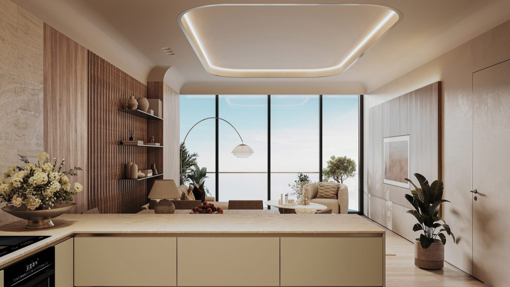 Tivano is a prestigious residential development by AYS Developments, prominently situated in the Dubai Island area. This 11-story complex features a mix of luxurious 1 and 2-bedroom units, exclusive 3-bedroom duplexes, and 4-bedroom apartments. Each residence is equipped with top-tier amenities, making it a standout addition to the Dubai skyline. Scheduled for completion in the fourth quarter of 2026, Tivano promises modern features and sophisticated living spaces. The interiors of Tivano showcase a blend of elegance and innovation. The apartments are furnished with high-quality materials and branded fixtures from renowned international brands such as Scavolini for kitchens and wardrobes, Dornbracht for sanitary fittings, and Bertolotto for doors. All units boast contemporary designs enhanced by top-of-the-line appliances and luxurious finishes, catering to every aspect of high-end living. The project includes an array of leisure facilities, such as a rooftop infinity saltwater pool, an advanced fitness center, and a business lounge. Coupled with spectacular views of the surrounding maritime area and a short five-minute walk to the beach, Tivano is an ideal location for luxury living.